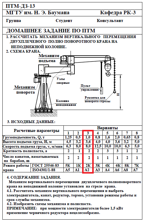 Для студентов МГТУ им. Н.Э.Баумана по предмету Подъёмно-транспортные машины (ПТМ)Расчёт механизма подъёмно-транспортной машины (ПТМ)Расчёт механизма подъёмно-транспортной машины (ПТМ)