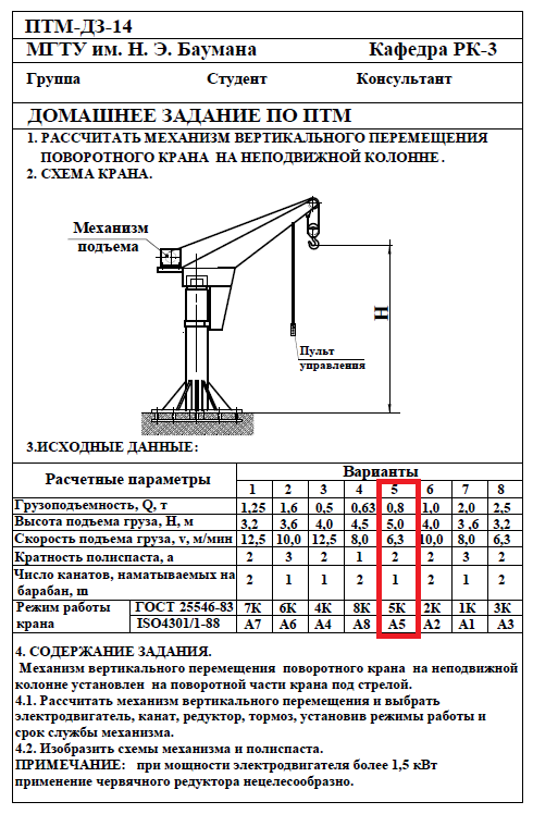 Для студентов МГТУ им. Н.Э.Баумана по предмету Подъёмно-транспортные машины (ПТМ)Расчёт механизма подъёмно-транспортной машины (ПТМ)Расчёт механизма подъёмно-транспортной машины (ПТМ)