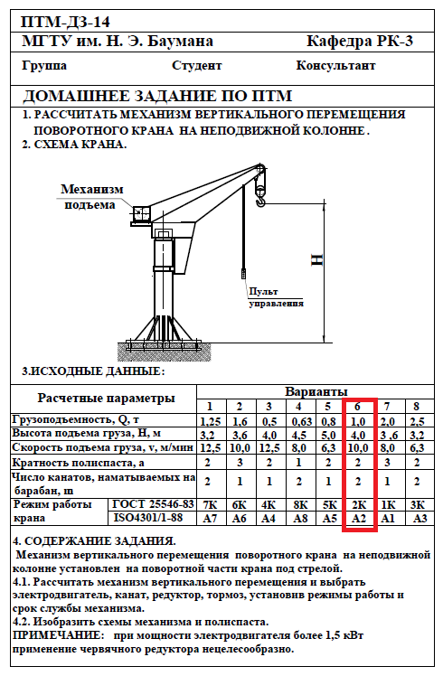 Для студентов МГТУ им. Н.Э.Баумана по предмету Подъёмно-транспортные машины (ПТМ)Расчёт механизма подъёмно-транспортной машины (ПТМ)Расчёт механизма подъёмно-транспортной машины (ПТМ)