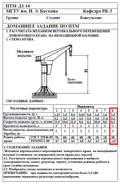 Для студентов МГТУ им. Н.Э.Баумана по предмету Подъёмно-транспортные машины (ПТМ)Расчёт механизма подъёмно-транспортной машины (ПТМ)Расчёт механизма подъёмно-транспортной машины (ПТМ)