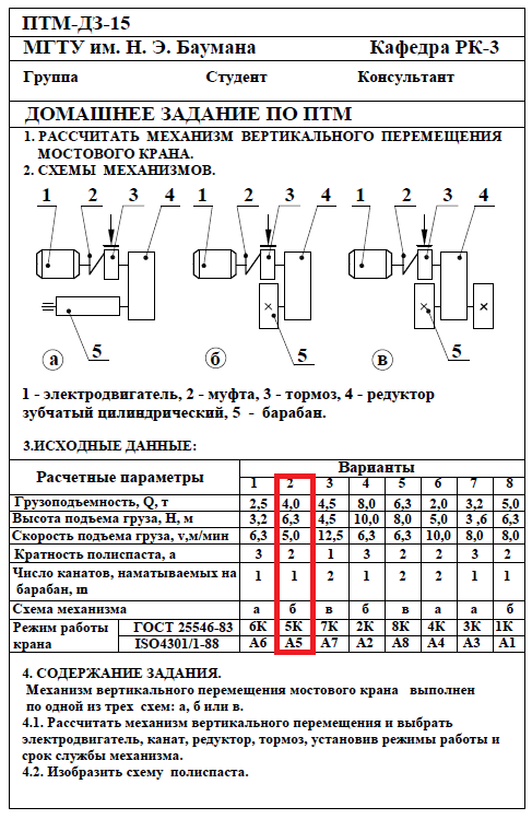 Для студентов МГТУ им. Н.Э.Баумана по предмету Подъёмно-транспортные машины (ПТМ)Расчёт механизма подъёмно-транспортной машины (ПТМ)Расчёт механизма подъёмно-транспортной машины (ПТМ)