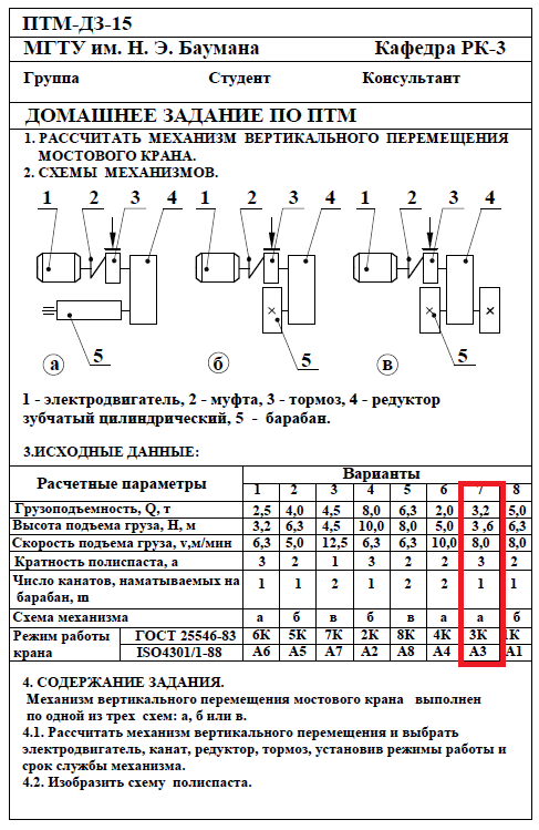 Для студентов МГТУ им. Н.Э.Баумана по предмету Подъёмно-транспортные машины (ПТМ)Расчёт механизма подъёмно-транспортной машины (ПТМ)Расчёт механизма подъёмно-транспортной машины (ПТМ)