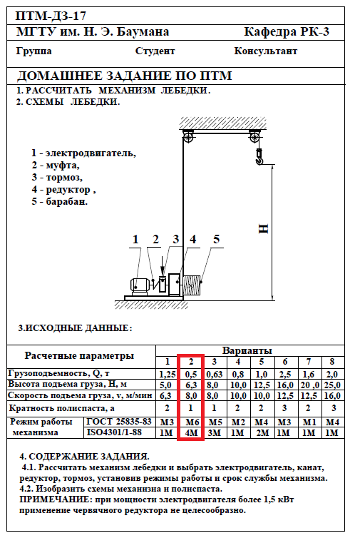Для студентов МГТУ им. Н.Э.Баумана по предмету Подъёмно-транспортные машины (ПТМ)Расчёт механизма подъёмно-транспортной машины (ПТМ)Расчёт механизма подъёмно-транспортной машины (ПТМ)
