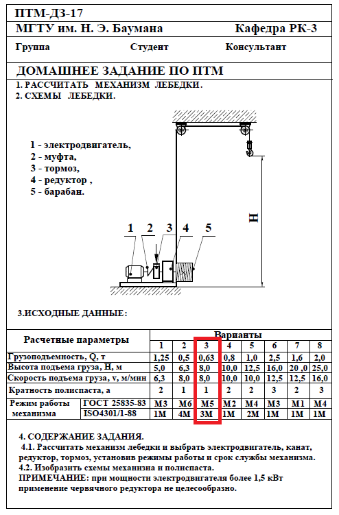 Для студентов МГТУ им. Н.Э.Баумана по предмету Подъёмно-транспортные машины (ПТМ)Расчёт механизма подъёмно-транспортной машины (ПТМ)Расчёт механизма подъёмно-транспортной машины (ПТМ)