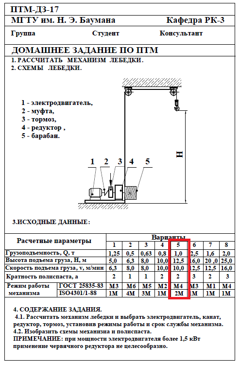 Для студентов МГТУ им. Н.Э.Баумана по предмету Подъёмно-транспортные машины (ПТМ)Расчёт механизма подъёмно-транспортной машины (ПТМ)Расчёт механизма подъёмно-транспортной машины (ПТМ)