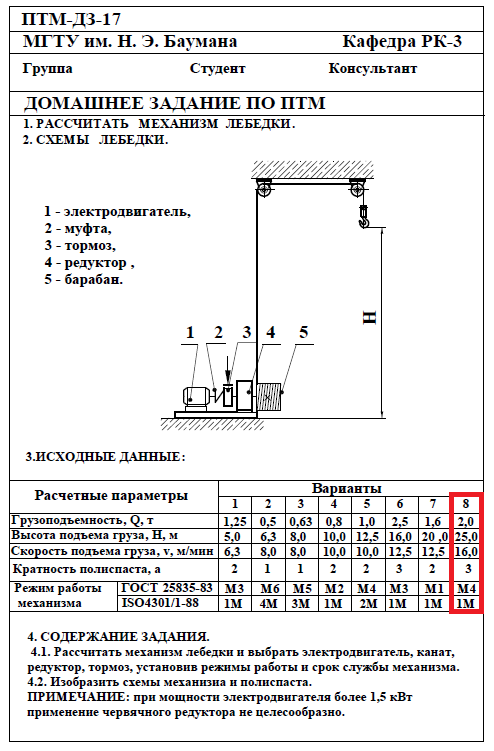 ДЗ 17: Расчёт механизма подъёмно-транспортной машины (ПТМ) вариант 8