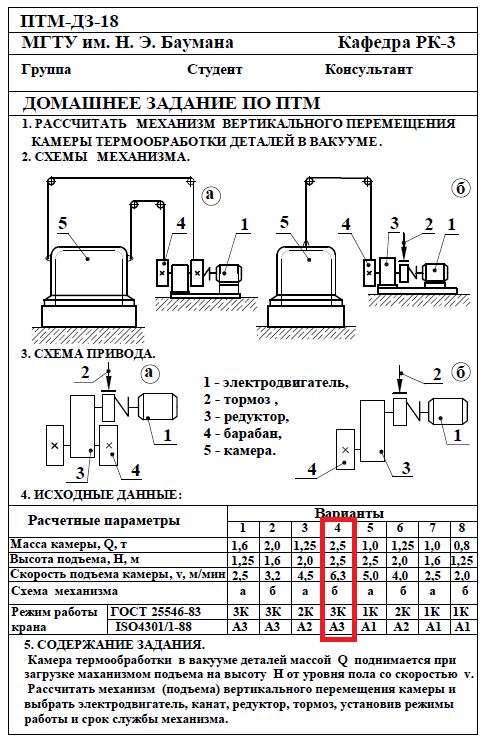 Для студентов МГТУ им. Н.Э.Баумана по предмету Подъёмно-транспортные машины (ПТМ)Расчёт механизма подъёмно-транспортной машины (ПТМ)Расчёт механизма подъёмно-транспортной машины (ПТМ)