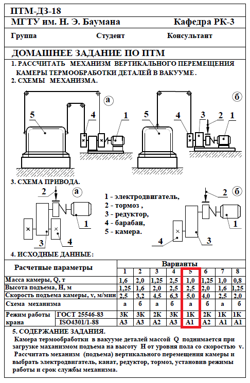Для студентов МГТУ им. Н.Э.Баумана по предмету Подъёмно-транспортные машины (ПТМ)Расчёт механизма подъёмно-транспортной машины (ПТМ)Расчёт механизма подъёмно-транспортной машины (ПТМ)