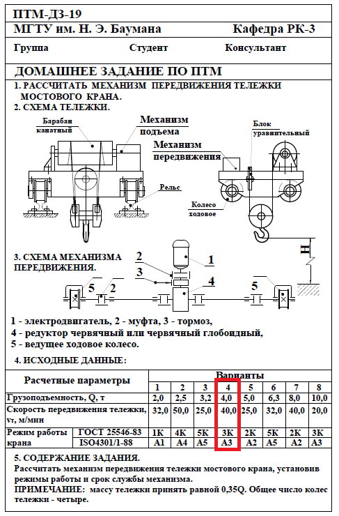 Для студентов МГТУ им. Н.Э.Баумана по предмету Подъёмно-транспортные машины (ПТМ)Расчёт механизма подъёмно-транспортной машины (ПТМ)Расчёт механизма подъёмно-транспортной машины (ПТМ)