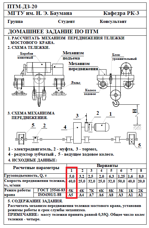 Для студентов МГТУ им. Н.Э.Баумана по предмету Подъёмно-транспортные машины (ПТМ)Расчёт механизма подъёмно-транспортной машины (ПТМ)Расчёт механизма подъёмно-транспортной машины (ПТМ)