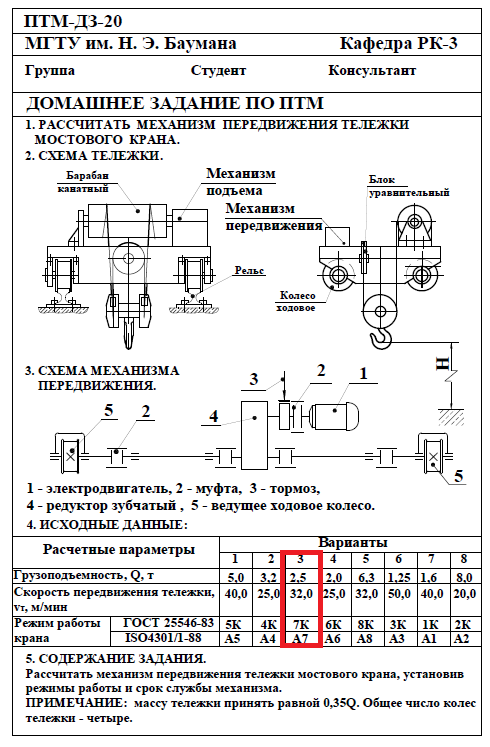 Для студентов МГТУ им. Н.Э.Баумана по предмету Подъёмно-транспортные машины (ПТМ)Расчёт механизма подъёмно-транспортной машины (ПТМ)Расчёт механизма подъёмно-транспортной машины (ПТМ)