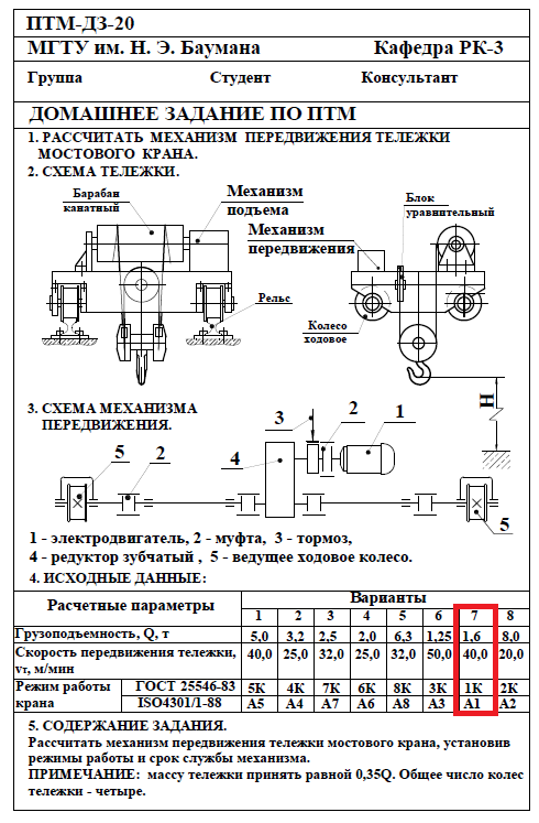 Для студентов МГТУ им. Н.Э.Баумана по предмету Подъёмно-транспортные машины (ПТМ)Расчёт механизма подъёмно-транспортной машины (ПТМ)Расчёт механизма подъёмно-транспортной машины (ПТМ)