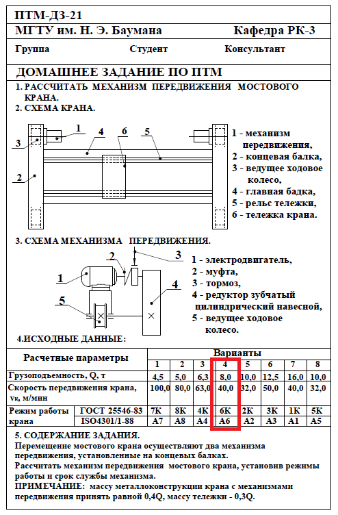 Для студентов МГТУ им. Н.Э.Баумана по предмету Подъёмно-транспортные машины (ПТМ)Расчёт механизма подъёмно-транспортной машины (ПТМ)Расчёт механизма подъёмно-транспортной машины (ПТМ)
