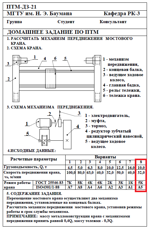 ДЗ 21: Расчёт механизма подъёмно-транспортной машины (ПТМ) вариант 8