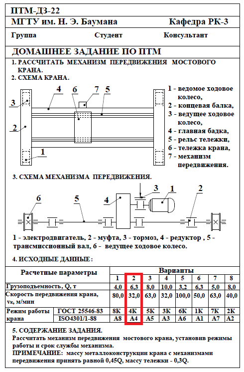 Для студентов МГТУ им. Н.Э.Баумана по предмету Подъёмно-транспортные машины (ПТМ)Расчёт механизма подъёмно-транспортной машины (ПТМ)Расчёт механизма подъёмно-транспортной машины (ПТМ)