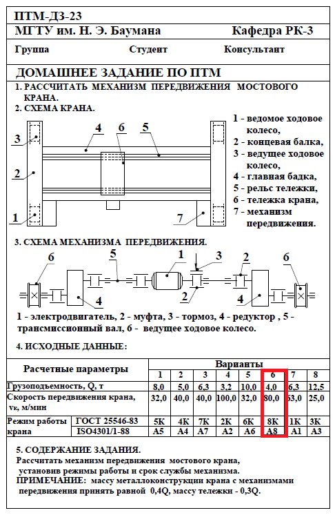 Для студентов МГТУ им. Н.Э.Баумана по предмету Подъёмно-транспортные машины (ПТМ)Расчёт механизма подъёмно-транспортной машины (ПТМ)Расчёт механизма подъёмно-транспортной машины (ПТМ)