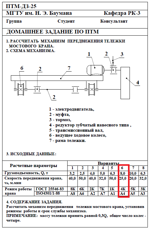 Для студентов МГТУ им. Н.Э.Баумана по предмету Подъёмно-транспортные машины (ПТМ)Расчёт механизма подъёмно-транспортной машины (ПТМ)Расчёт механизма подъёмно-транспортной машины (ПТМ)