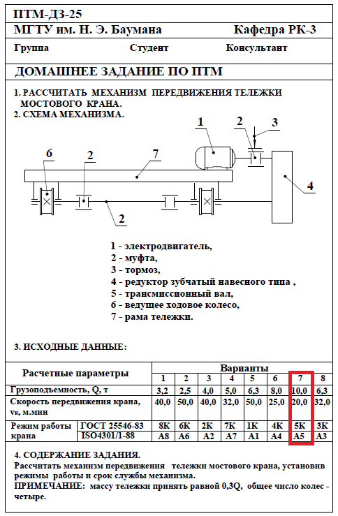 Для студентов МГТУ им. Н.Э.Баумана по предмету Подъёмно-транспортные машины (ПТМ)Расчёт механизма подъёмно-транспортной машины (ПТМ)Расчёт механизма подъёмно-транспортной машины (ПТМ)