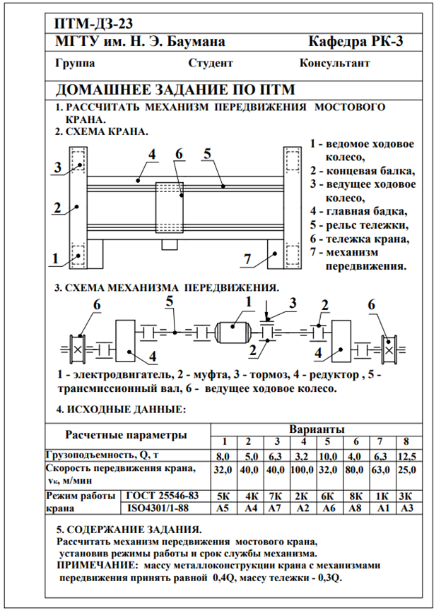 Для студентов МГТУ им. Н.Э.Баумана по предмету Подъёмно-транспортные машины (ПТМ)Расчёт механизма подъёмно-транспортной машины (ПТМ)Расчёт механизма подъёмно-транспортной машины (ПТМ)