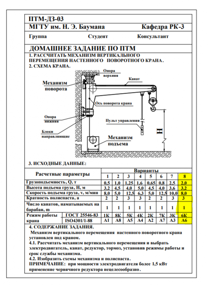 Для студентов МГТУ им. Н.Э.Баумана по предмету Подъёмно-транспортные машины (ПТМ)Расчёт механизма подъёмно-транспортной машины (ПТМ)Расчёт механизма подъёмно-транспортной машины (ПТМ)