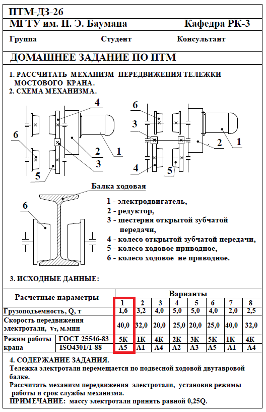 Для студентов МГТУ им. Н.Э.Баумана по предмету Подъёмно-транспортные машины (ПТМ)Расчёт механизма подъёмно-транспортной машины (ПТМ)Расчёт механизма подъёмно-транспортной машины (ПТМ)