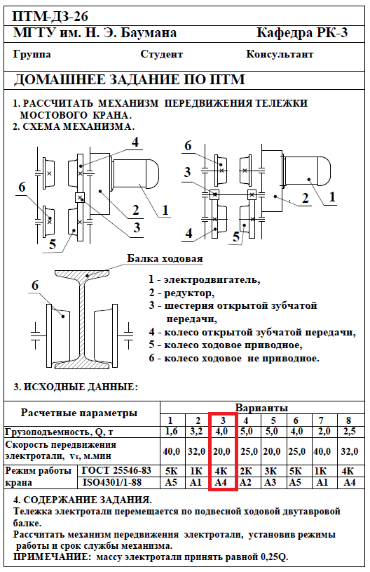 Для студентов МГТУ им. Н.Э.Баумана по предмету Подъёмно-транспортные машины (ПТМ)Расчёт механизма подъёмно-транспортной машины (ПТМ)Расчёт механизма подъёмно-транспортной машины (ПТМ)