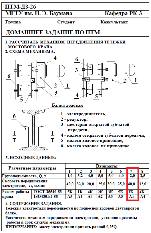 Для студентов МГТУ им. Н.Э.Баумана по предмету Подъёмно-транспортные машины (ПТМ)Расчёт механизма подъёмно-транспортной машины (ПТМ)Расчёт механизма подъёмно-транспортной машины (ПТМ)