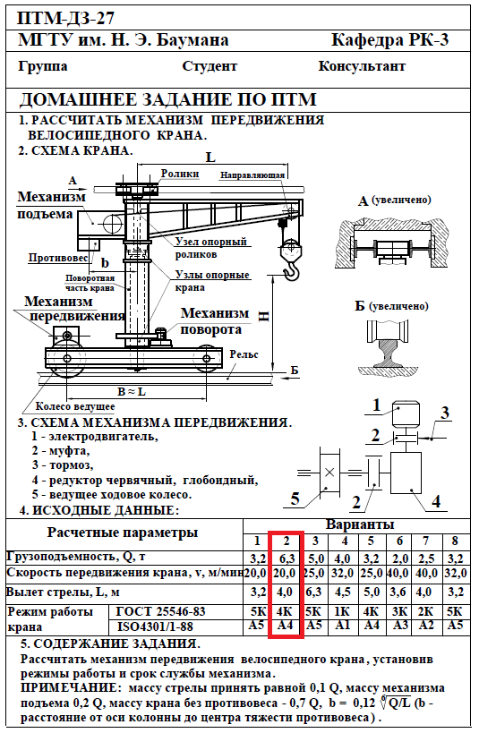 Для студентов МГТУ им. Н.Э.Баумана по предмету Подъёмно-транспортные машины (ПТМ)Расчёт механизма подъёмно-транспортной машины (ПТМ)Расчёт механизма подъёмно-транспортной машины (ПТМ)