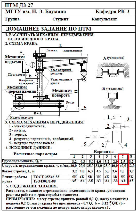 Для студентов МГТУ им. Н.Э.Баумана по предмету Подъёмно-транспортные машины (ПТМ)Расчёт механизма подъёмно-транспортной машины (ПТМ)Расчёт механизма подъёмно-транспортной машины (ПТМ)