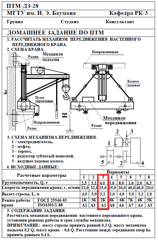 Для студентов МГТУ им. Н.Э.Баумана по предмету Подъёмно-транспортные машины (ПТМ)Расчёт механизма подъёмно-транспортной машины (ПТМ)Расчёт механизма подъёмно-транспортной машины (ПТМ)