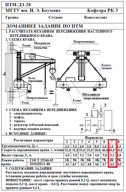 Для студентов МГТУ им. Н.Э.Баумана по предмету Подъёмно-транспортные машины (ПТМ)Расчёт механизма подъёмно-транспортной машины (ПТМ)Расчёт механизма подъёмно-транспортной машины (ПТМ)
