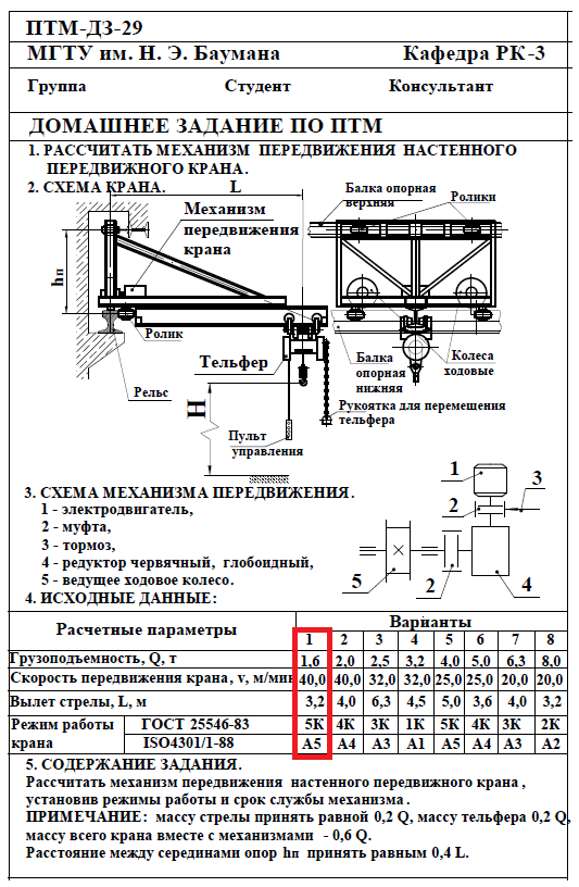 Для студентов МГТУ им. Н.Э.Баумана по предмету Подъёмно-транспортные машины (ПТМ)Расчёт механизма подъёмно-транспортной машины (ПТМ)Расчёт механизма подъёмно-транспортной машины (ПТМ)