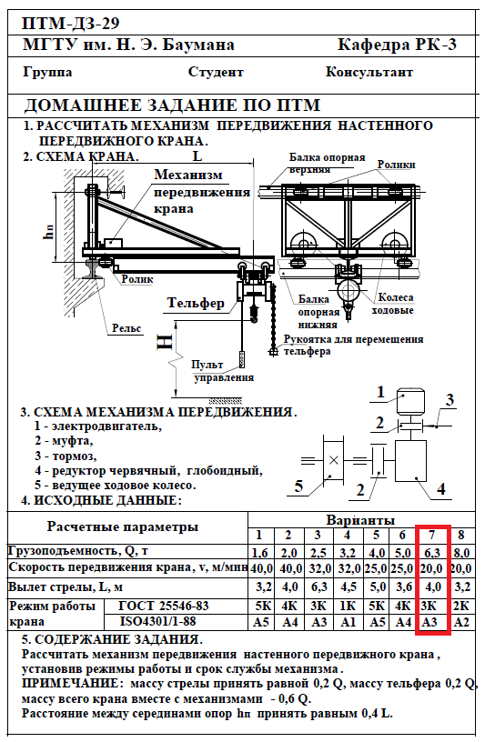 Для студентов МГТУ им. Н.Э.Баумана по предмету Подъёмно-транспортные машины (ПТМ)Расчёт механизма подъёмно-транспортной машины (ПТМ)Расчёт механизма подъёмно-транспортной машины (ПТМ)
