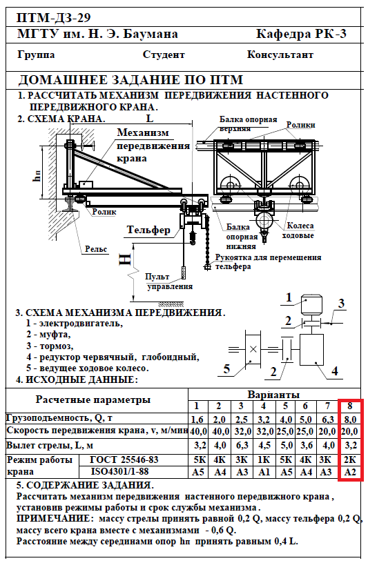 Для студентов МГТУ им. Н.Э.Баумана по предмету Подъёмно-транспортные машины (ПТМ)Расчёт механизма подъёмно-транспортной машины (ПТМ)Расчёт механизма подъёмно-транспортной машины (ПТМ)