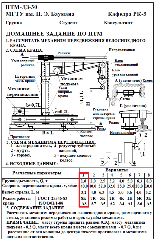 Для студентов МГТУ им. Н.Э.Баумана по предмету Подъёмно-транспортные машины (ПТМ)Расчёт механизма подъёмно-транспортной машины (ПТМ)Расчёт механизма подъёмно-транспортной машины (ПТМ)