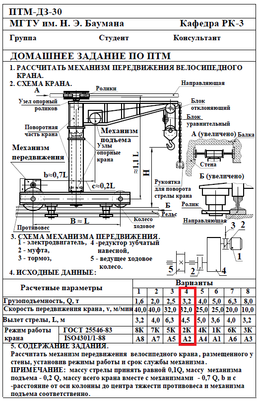 Для студентов МГТУ им. Н.Э.Баумана по предмету Подъёмно-транспортные машины (ПТМ)Расчёт механизма подъёмно-транспортной машины (ПТМ)Расчёт механизма подъёмно-транспортной машины (ПТМ)