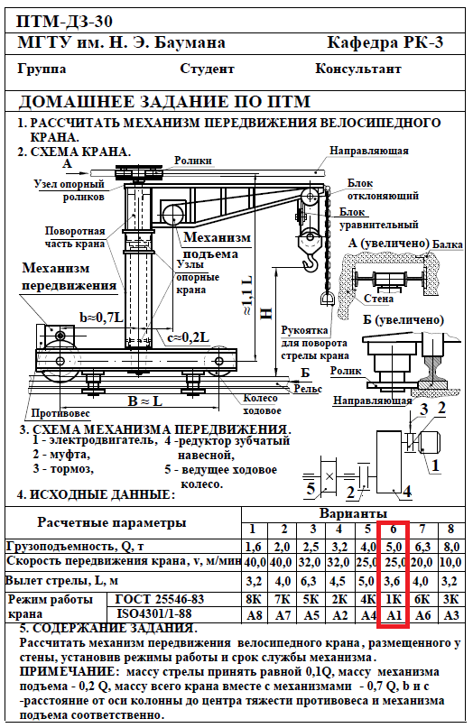 Для студентов МГТУ им. Н.Э.Баумана по предмету Подъёмно-транспортные машины (ПТМ)Расчёт механизма подъёмно-транспортной машины (ПТМ)Расчёт механизма подъёмно-транспортной машины (ПТМ)