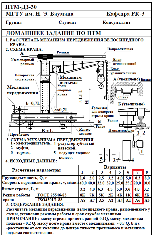 Для студентов МГТУ им. Н.Э.Баумана по предмету Подъёмно-транспортные машины (ПТМ)Расчёт механизма подъёмно-транспортной машины (ПТМ)Расчёт механизма подъёмно-транспортной машины (ПТМ)