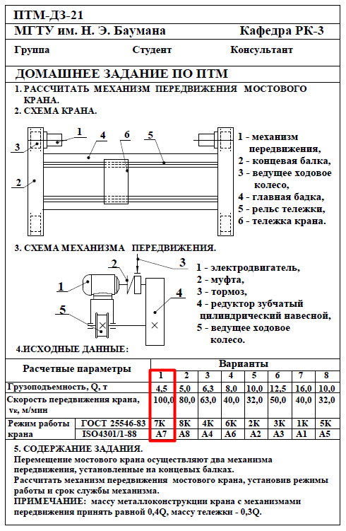 Для студентов МГТУ им. Н.Э.Баумана по предмету Подъёмно-транспортные машины (ПТМ)Расчёт механизма подъёмно-транспортной машины (ПТМ)Расчёт механизма подъёмно-транспортной машины (ПТМ)