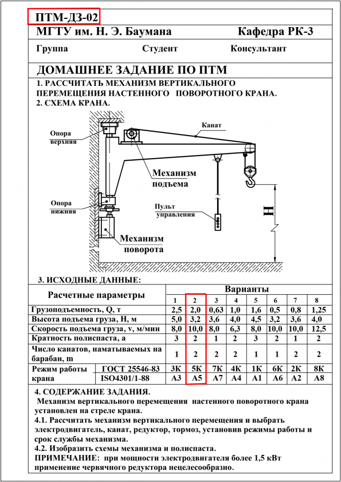 Для студентов МГТУ им. Н.Э.Баумана по предмету Подъёмно-транспортные машины (ПТМ)Расчет механизма подъёмно-транспортной машины (ПТМ)Расчет механизма подъёмно-транспортной машины (ПТМ)