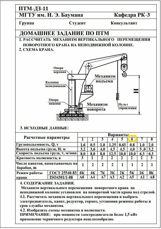 Для студентов МГТУ им. Н.Э.Баумана по предмету Подъёмно-транспортные машины (ПТМ)Расчёт механизма подъёмно-транспортной машиныРасчёт механизма подъёмно-транспортной машины