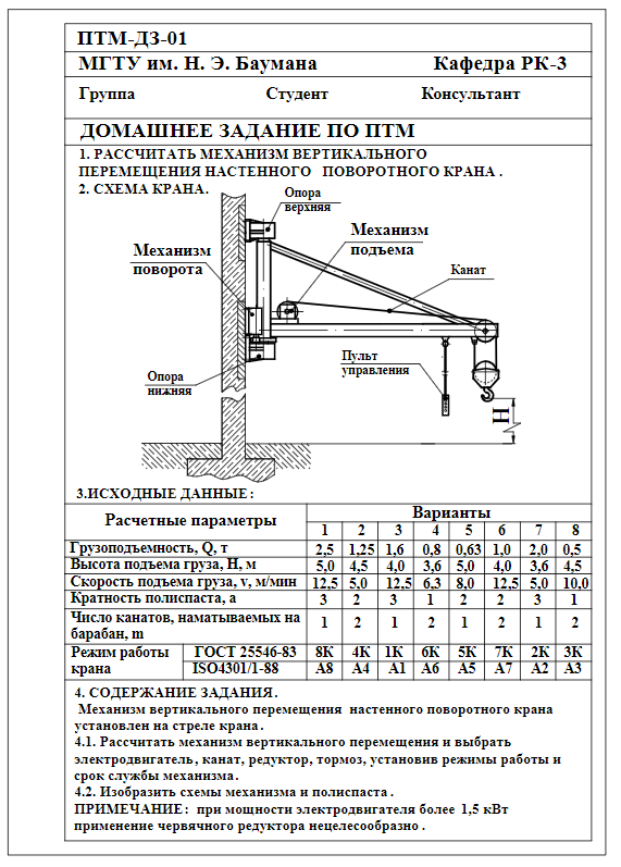 Для студентов МГТУ им. Н.Э.Баумана по предмету Подъёмно-транспортные машины (ПТМ)Условия ДЗУсловия ДЗ