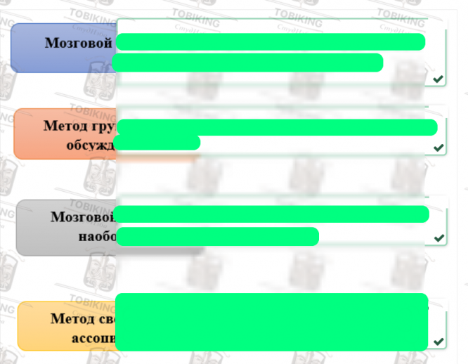 Установите соответствие между методом определения проблем и его определением. Для выполнения задания соотнесите содержание левосторонних (цветных) блоков схемы и правосторонних ее элементов. Сформируйте единую систему. метод решения задач, в котором участники обсуждения генерируют максимальное количество идей решения задачи, в том числе самые фантастические свободное высказывание идей участниками и составление полного списка идей для выбора главной все участники должны выявлять недостатки предлагаемых идей, обозначив таким образом слабые стороны идеи и пути их решения на листе бумаги пишут слов, относящиеся к проблеме, добавляют другое слово, затем еще одно и т.