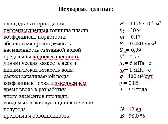 Для студентов СамГТУ по предмету Подземная гидромеханикаРасчёт показателей разработки однородного пласта на основе модели двухфазной фильтрации для жёсткого водонапорного режима (плоскорадиальное движение)Расчёт показателей разработки однородного пласта на основе модели двухфазной фильтрации для жёсткого водонапорного режима (плоскорадиальное движение)