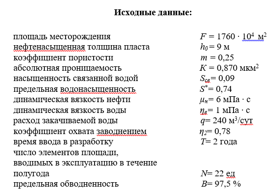 Для студентов СамГТУ по предмету Подземная гидромеханикаРасчёт показателей разработки однородного пласта на основе модели двухфазной фильтрации для жёсткого водонапорного режима (плоскорадиальное движение)Расчёт показателей разработки однородного пласта на основе модели двухфазной фильтрации для жёсткого водонапорного режима (плоскорадиальное движение)