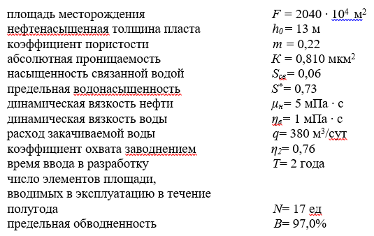 1) определить изменение во времени добычи нефти, воды, обводненности продукции и текущей нефтеотдачи для элемента системы разработки и для месторождения в целом;