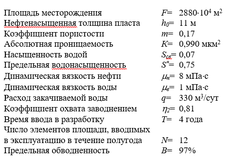 1) определить изменение во времени добычи нефти, воды, обводненности продукции и текущей нефтеотдачи для элемента системы разработки и для месторождения в целом;