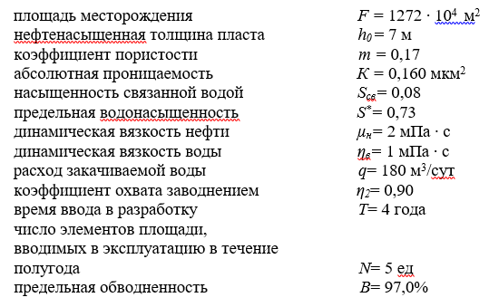 Нефтяное месторождение площадью F запланировано разрабатывать с использованием заводнения при площадной семиточечной схеме размещения скважин.