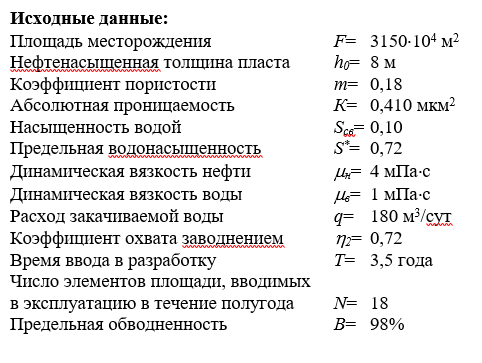Нефтяное месторождение площадью F запланировано разрабатывать с использованием заводнения при площадной семиточечной схеме размещения скважин.