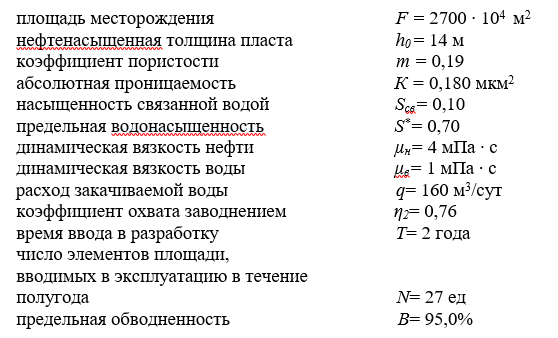 Нефтяное месторождение площадью F запланировано разрабатывать с использованием заводнения при площадной семиточечной схеме размещения скважин.